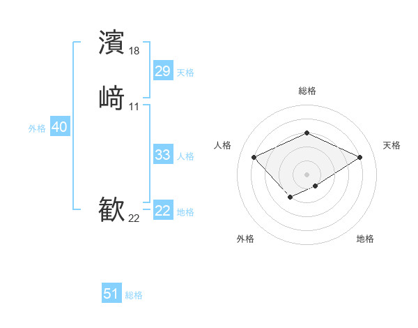 濱﨑 歓さんを姓名の画数から五運を鑑定
