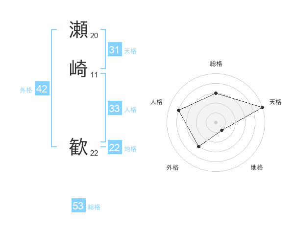 瀬崎 歓さんを姓名の画数から五運を鑑定