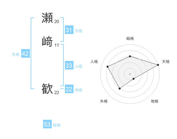 瀬﨑 歓さんを姓名の画数から五運を鑑定