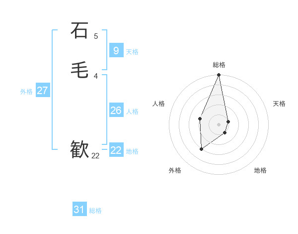 石毛 歓さんの総格は31画の5点!