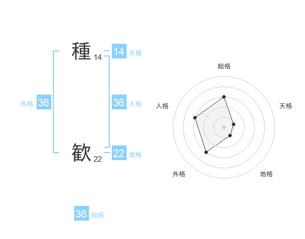 種 歓さんの外格は36画の3点!