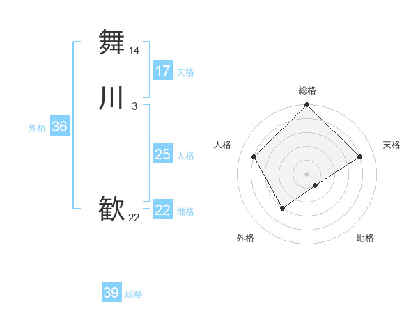 舞川 歓さんを姓名の画数から五運を鑑定