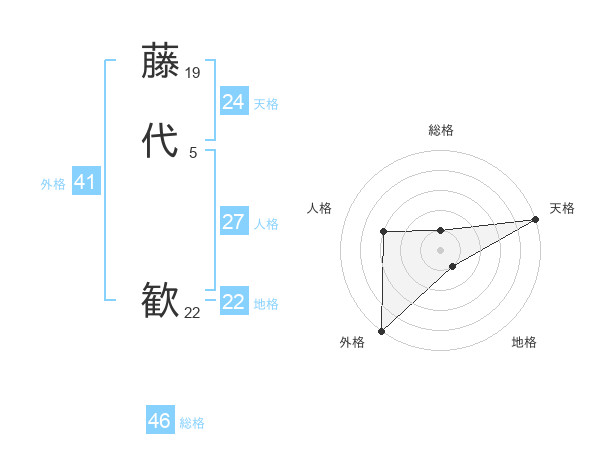 藤代 歓さんの天格は24画の5点!