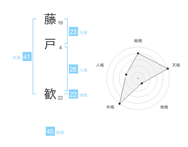 藤戸 歓さんの総格は45画の4点!
