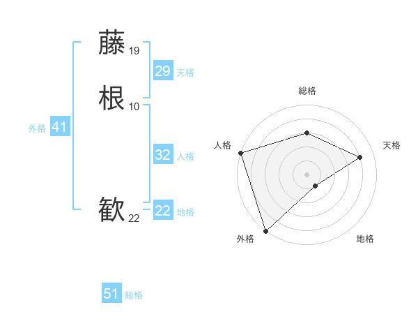 藤根 歓さんの総格は51画の3点!