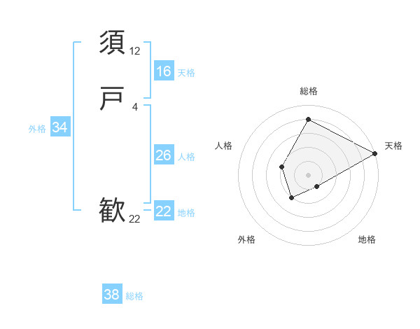 須戸 歓さんの総格は38画の4点!