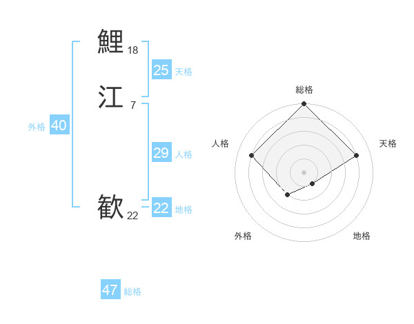 鯉江 歓さんを姓名の画数から五運を鑑定