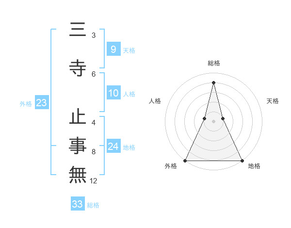 三寺 止事無さんの総格は33画の4点!