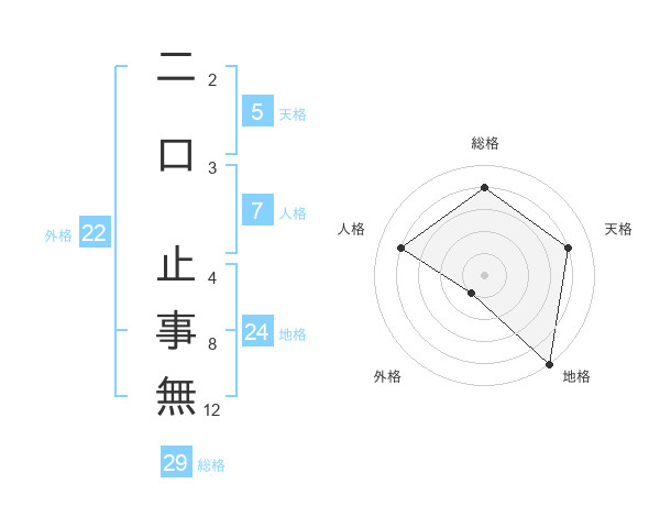 二口 止事無さんの総格は29画の4点!