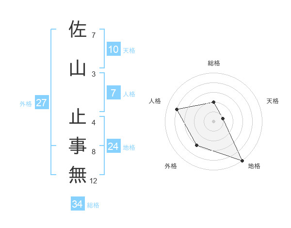 佐山 止事無さんを姓名の画数から五運を鑑定