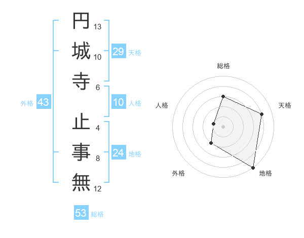 円城寺 止事無さんを姓名の画数から五運を鑑定