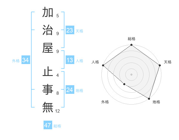 加治屋 止事無さんの総格は47画の5点!