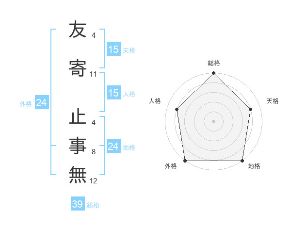 友寄 止事無さんの総格は39画の5点!