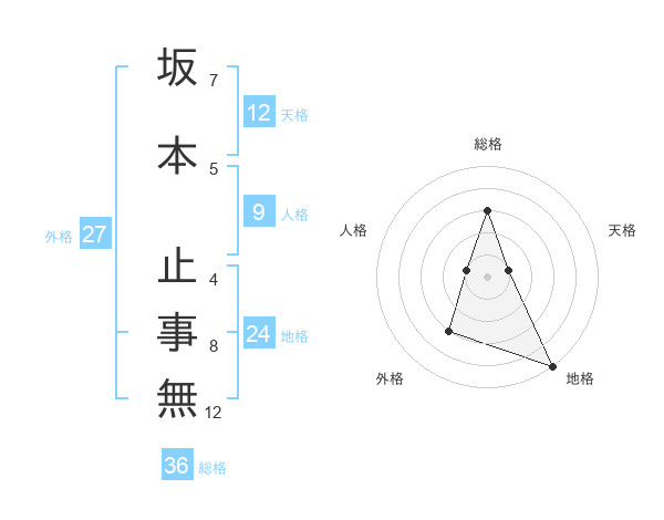坂本 止事無さんを姓名の画数から五運を鑑定