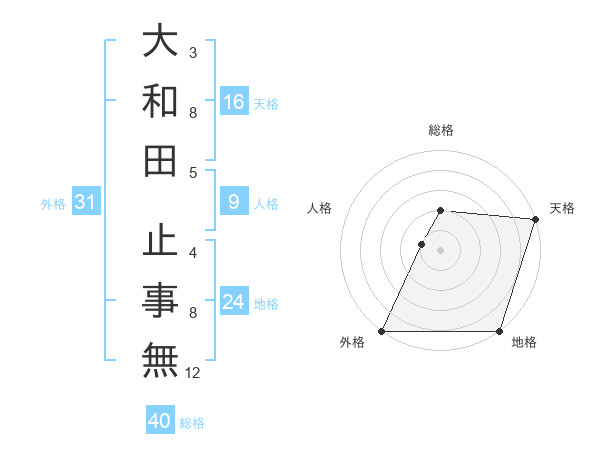 大和田 止事無さんの外格は31画の5点!