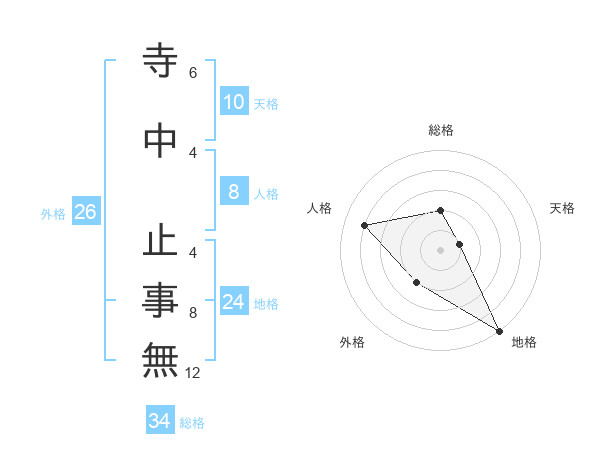 寺中 止事無さんを姓名の画数から五運を鑑定