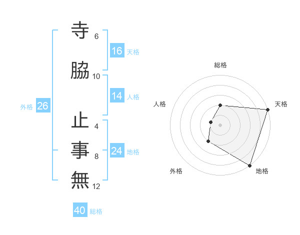 寺脇 止事無さんを姓名の画数から五運を鑑定