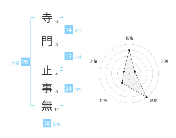 寺門 止事無さんを姓名の画数から五運を鑑定