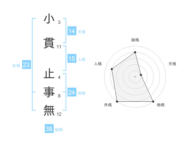 小貫 止事無さんを姓名の画数から五運を鑑定