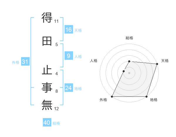 得田 止事無さんの外格は31画の5点!