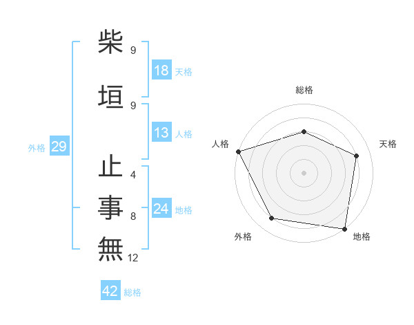 柴垣 止事無さんを姓名の画数から五運を鑑定