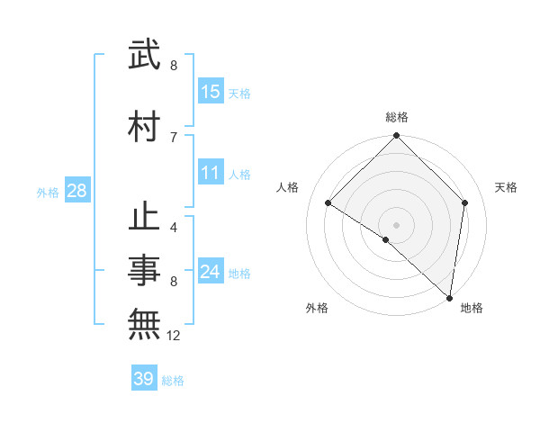 武村 止事無さんの総格は39画の5点!