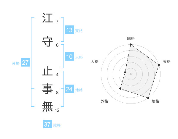 江守 止事無さんの総格は37画の5点!