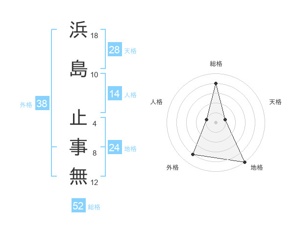 浜島 止事無さんを姓名の画数から五運を鑑定