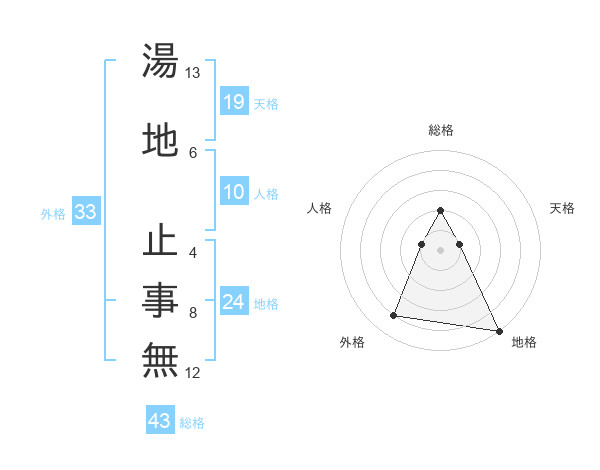 湯地 止事無さんを姓名の画数から五運を鑑定