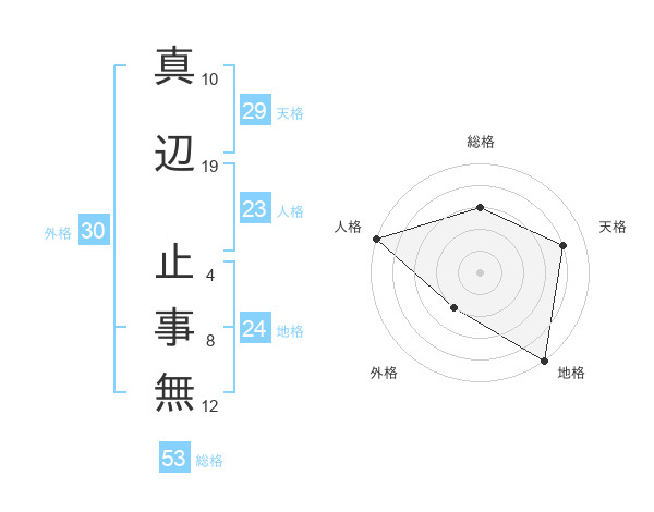 真辺 止事無さんの総格は53画の3点!