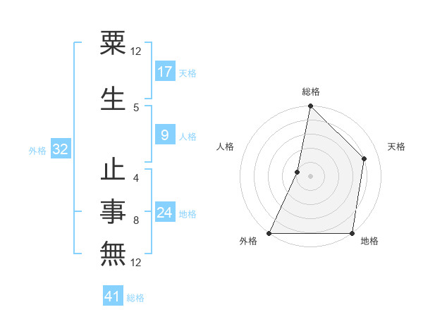 粟生 止事無さんを姓名の画数から五運を鑑定