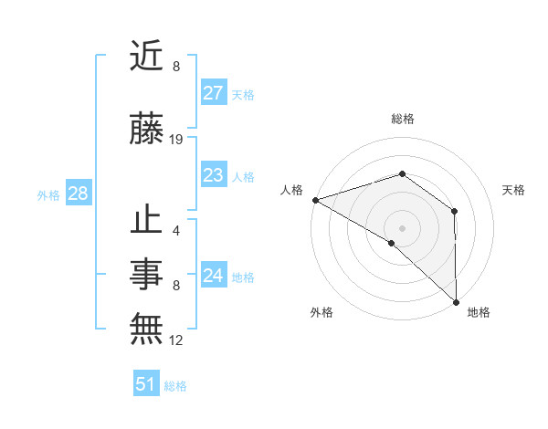 近藤 止事無さんを姓名の画数から五運を鑑定