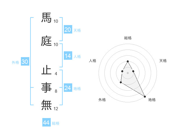 馬庭 止事無さんを姓名の画数から五運を鑑定