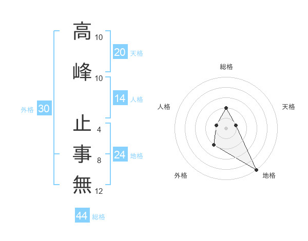 高峰 止事無さんを姓名の画数から五運を鑑定