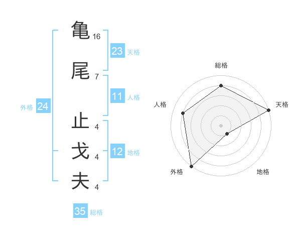 亀尾 止戈夫さんの総格は35画の4点!