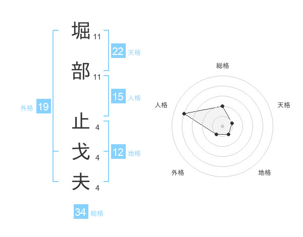 堀部 止戈夫さんの総格は34画の2点!