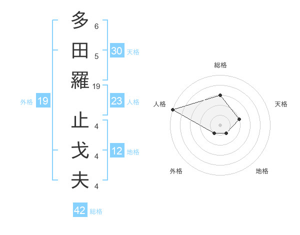 多田羅 止戈夫さんを姓名の画数から五運を鑑定
