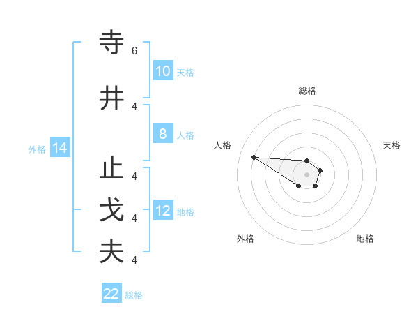 寺井 止戈夫さんの総格は22画の1点!
