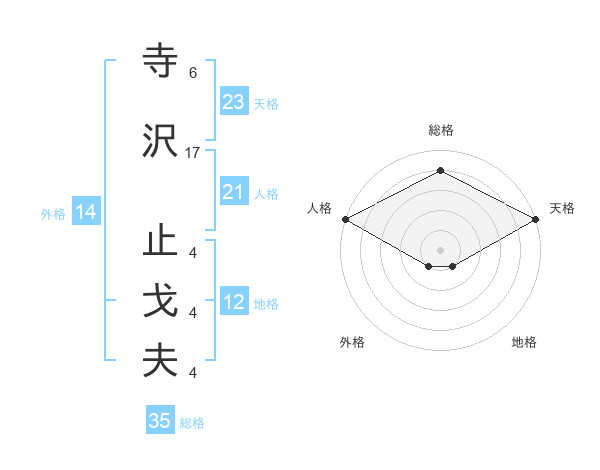寺沢 止戈夫さんの天格は23画の5点!
