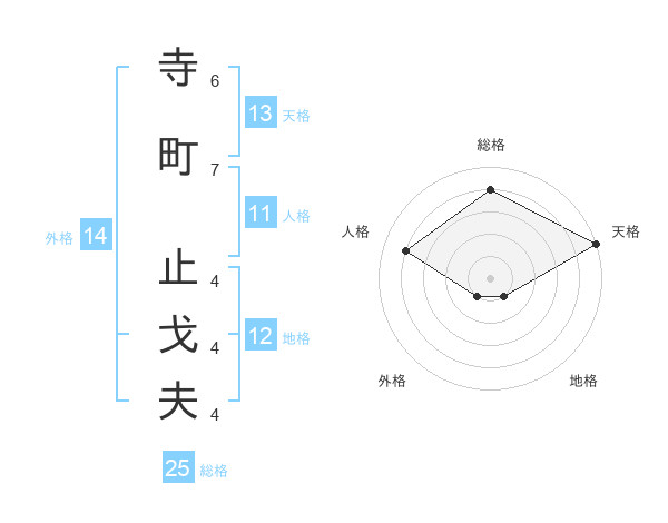 寺町 止戈夫さんを姓名の画数から五運を鑑定