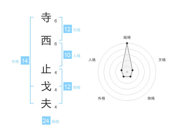 寺西 止戈夫さんの総格は24画の5点!