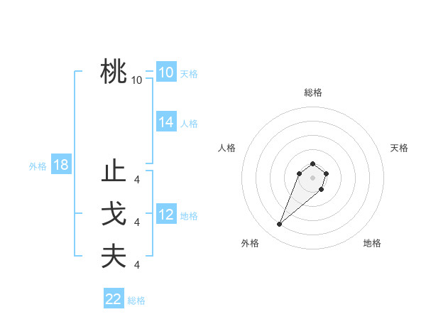 桃 止戈夫さんを姓名の画数から五運を鑑定