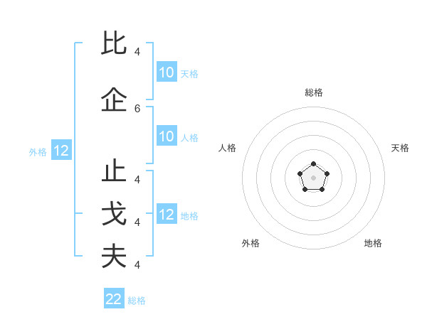 比企 止戈夫さんを姓名の画数から五運を鑑定