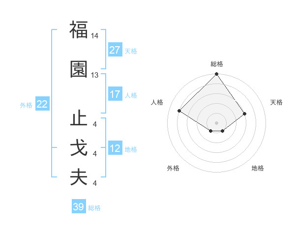 福園 止戈夫さんの総格は39画の5点!