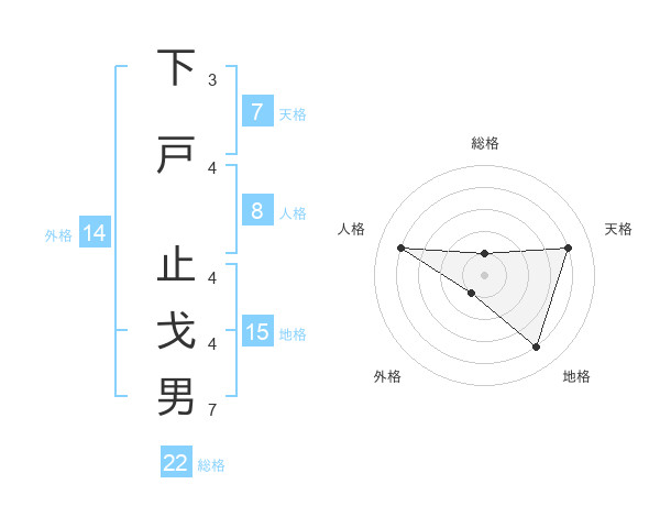 下戸 止戈男さんを姓名の画数から五運を鑑定
