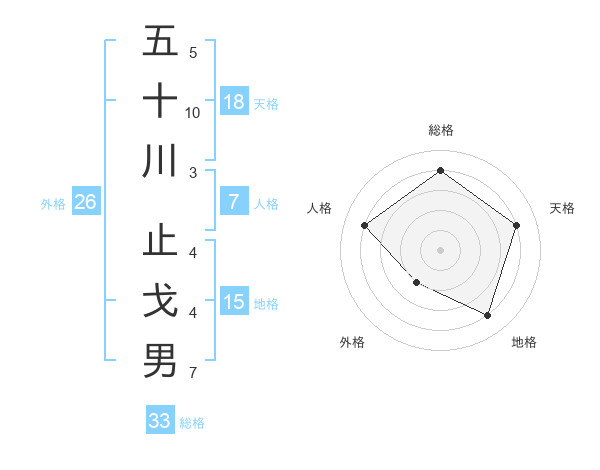 五十川 止戈男さんの天格は18画の4点!