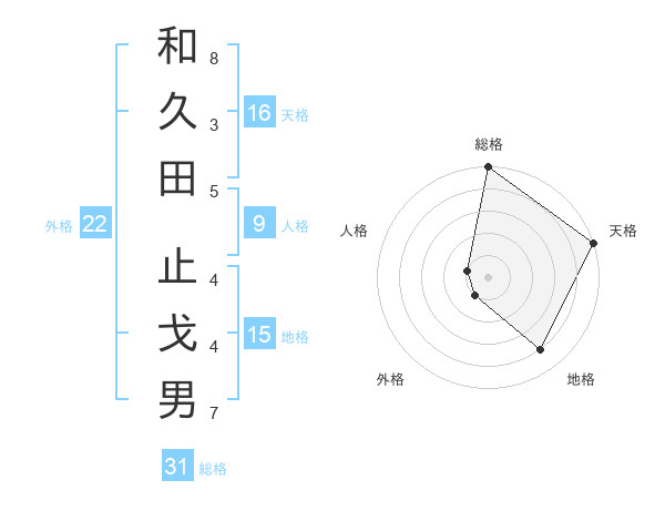 和久田 止戈男さんを姓名の画数から五運を鑑定