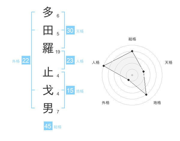 多田羅 止戈男さんを姓名の画数から五運を鑑定