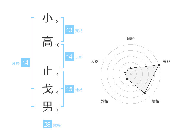 小高 止戈男さんの総格は28画の1点!