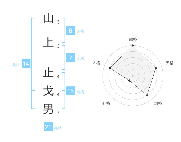 山上 止戈男さんを姓名の画数から五運を鑑定
